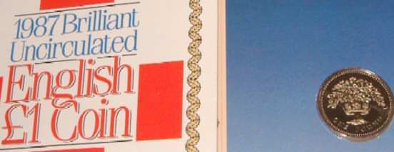 | 1987 English 1 Pound Coin Oak Tree in official issue foldout flat pack (Nickel Brass) £1 |