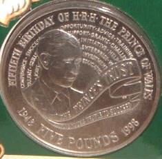 | 1998 Prince Charles 50th Birthday 5 Pound Banknote & 5 Pound Coin Special Issue £5 note with Cypher PW50 serial # 000297 out of only 1,000 printed a long with £5 coin. Issued by the Royal Mint & Bank of England for Prince Charles 50th Birthday These £5 notes only available in these sets not for general issue. In official pack with booklet & outer cover & Cert # PW50 000297 (only 1000 issued) |