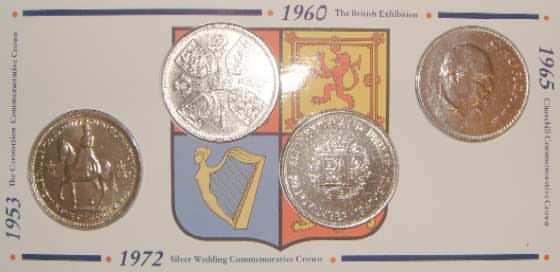 1953-1990 Queen Elizabeth II Crown Collection 8 Crowns as follows 1953 Coronation, 1960 British Exhibition, 1965 Churchill, 1972 Silver Wedding, 1977 Silver Jubilee, 1980 Queen Mothers 80th Birthday, 1981 Charles & Diana Wedding, 1990 Queen Mothers 90th Birthday. In Royal Mint flat pack with cover as issued |