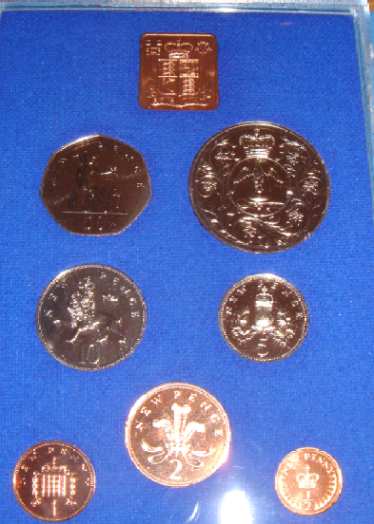 1983 Proof Set (currency) £1 Royal Coat of Arms for Great Britain 1st year of issue 50p,20p,10p,5p,2p,1p,½p. Base case & COA some light toning |