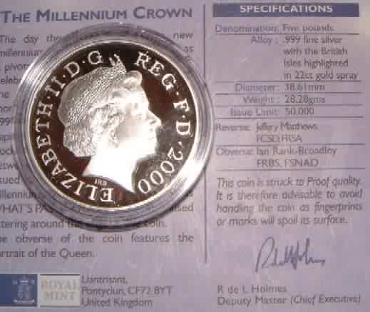 | 1999/2000 silver | Millennium. British Isles plated in 22ct gold .999 pure silver In Royal Mint Box & COA 2000 issue |
