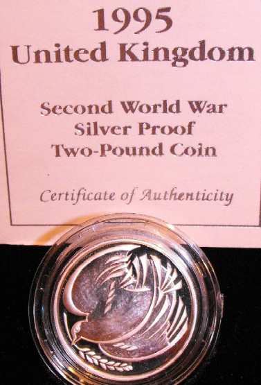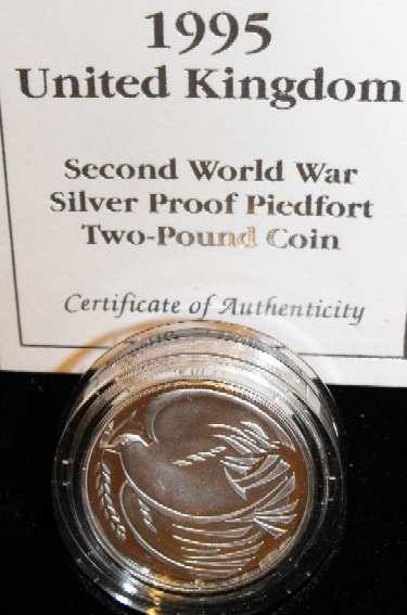 | 1995 silver | Dove of Peace End of WWII Piedfort issue |