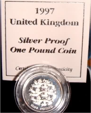 | 1997 silver | USA 1997P 1oz Pure Silver Proof Eagle $1 with 1997 Great Britain 1 Pound Coin 3 Lions for England Silver Proof. Symbols of Freedom Set. RARE only 1500 sets issued. In box of Issue with COA. $1 eagle 1oz .999 Pure Silver UK £1 .925 Silver |