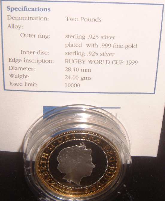 | 1999 silver | PIEDFORT Rugby World Cup Bi - Metal Hologram outer ring plated in .999 pure gold Boxed & COA |