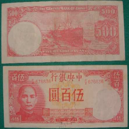 Sun Yat-sen Ship/Boats on back light soiling/aging | VF to GVF | 4.00 |