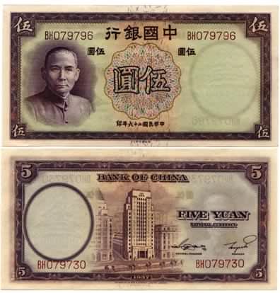 | 5 Yuan | 1936 | 213a | Sign 5 Sun Yat-sen | AU+ | 3.00sold |