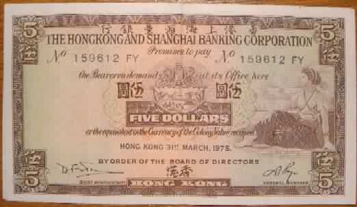 minor dirt on back Hong Kong & Shanghai Banking